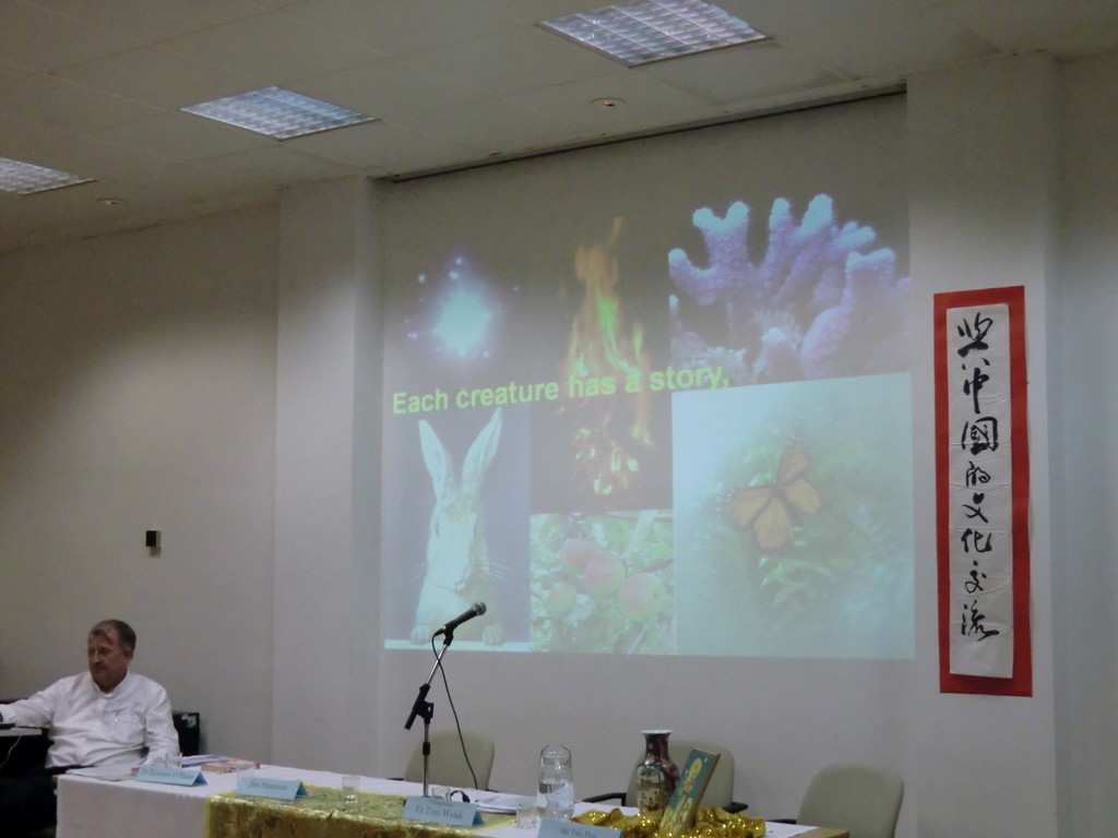 Teng Li viewing the display at the AGM and had this to say as part of his presentation - Experience of being part of the Church in China and here - support, difficulties, challenges, etc .