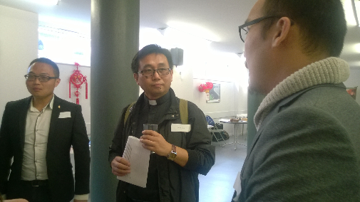 Bin Jiang, (left) postgraduate student of International Relations at Durham University with Li Xinan. When asked about introducing Catholic beliefs to people in China, he had this to say: "that they had to consider this in the context of modern China. First most Chinese people were raised as atheists so they usually had an instinctive opposition towards religious preaching. Another thing was that most people developed serious trust issues after the holocaust in the 1970s. And with the scandals of the pyramid scheme in recent years, a lot of people are especially careful with anything related to unknown organisations. So it is better to get people's interests with cultural influences such as music or architecture first, especially with younger generation who are more open to cultural diversity."