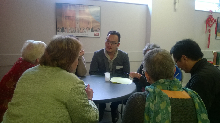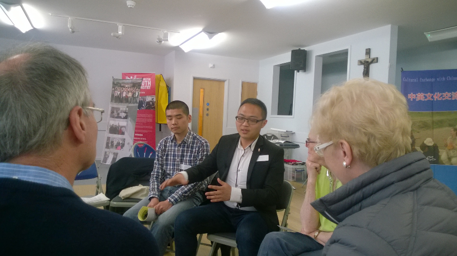 Margaret Siberry, Leeds, and former Sec to CEC Executive, chat with two of our speakers. Margaret shared on why she had joined CEC in 2002 and had this to say about the AGM. " I was really encouraged by the buzz, energy and enthusiasm that permeated the day. People seemed genuinely interested in learning more about faith in China, its historical traditions and deep spiritual heritage as well as the complexities of practising faith now. The contribution of three post graduate Chinese students and Chaplain, Fr Joseph Liang, all speaking from their experience, was particularly illuminating. For me the conference was a welcome opportunity to learn, discuss and appreciate the complexity but great hope for people of faith in China and, more importantly, how we can build bridges with people of faith in our own country."
