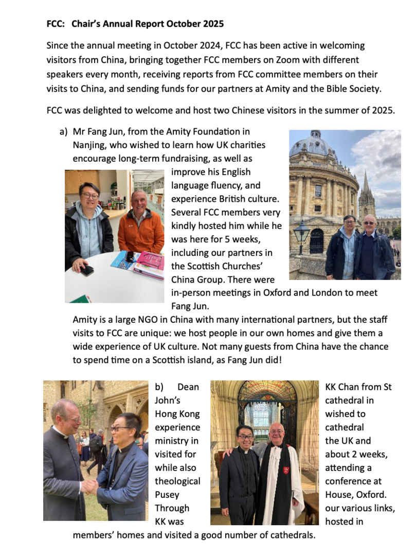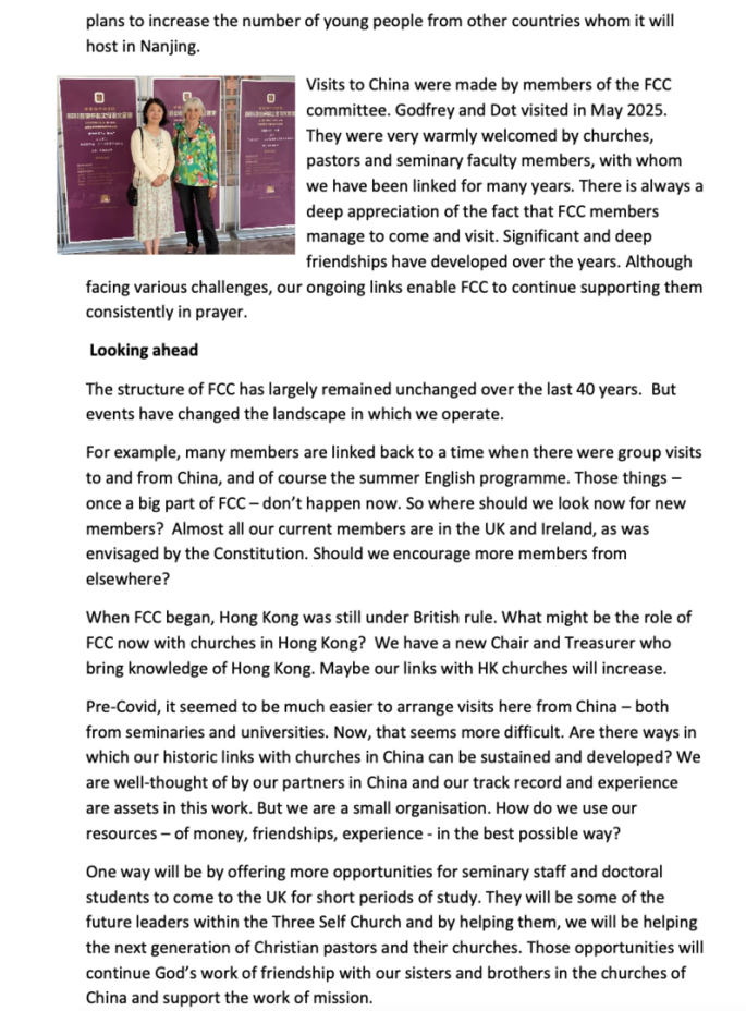 see friends of FCC, including Dr Luo Chengzan (he has just moved from Hebei Bible School to become a staff member at the Yanjing seminary in Beijing).