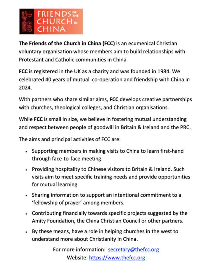 Friends of the Church in China is a UK Registered Charity, no 1004221.